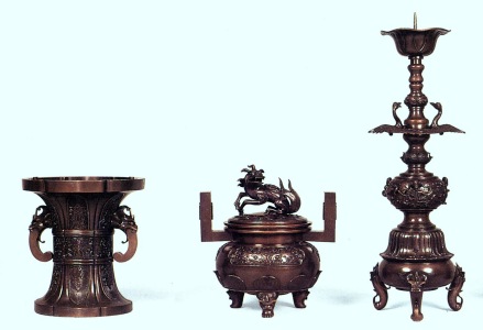 御在家様用 菖蒲型 天女彫刻入 三具足